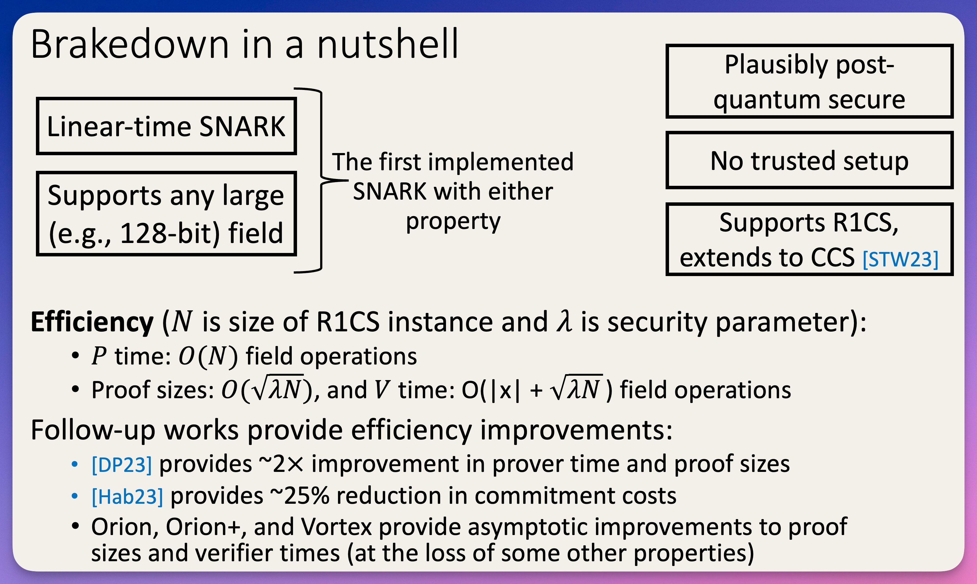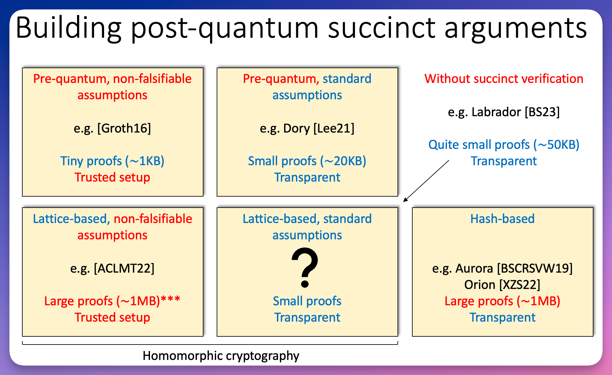 introducing a Lattice-Based Recursively Amortized Demonstration Of R1CS (LaBRADOR), with more compact proof sizes than known hash-based proof systems.