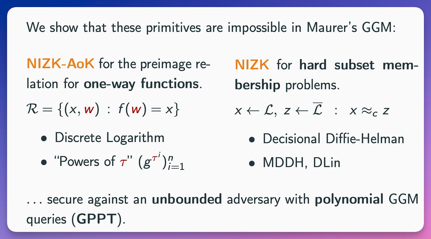 The second one covers NIZK (not necessarily AoK) for hard subset problems, which captures relations such as DDH, Decision-Linear and Matrix-DDH.