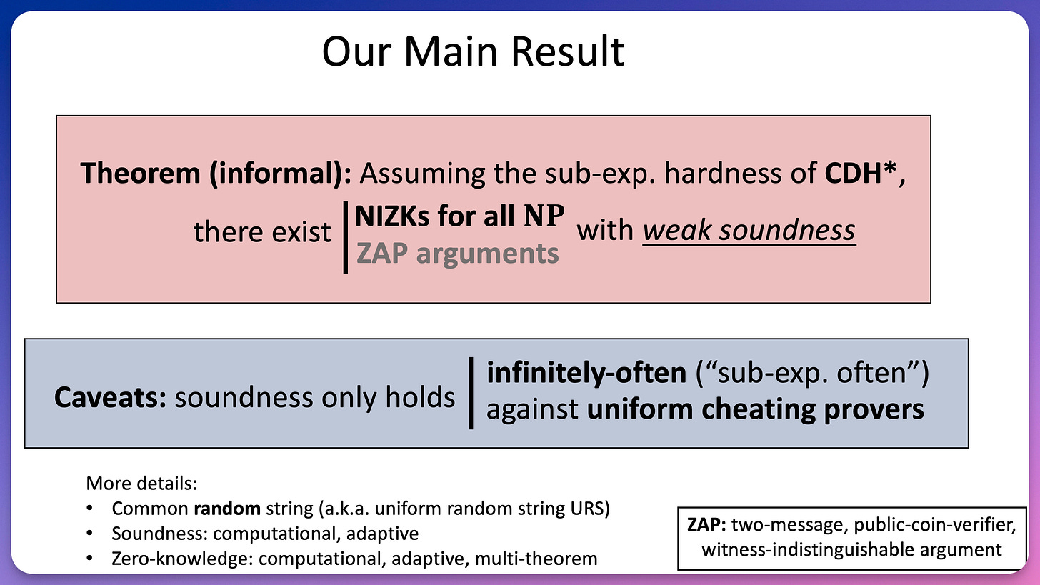 build non-interactive zero-knowledge (NIZK) and ZAP arguments for all NP where soundness holds for infinitely-many security parameters, and against uniform adversaries, assuming the subexponential hardness of the Computational Diffie-Hellman (CDH) assumption.