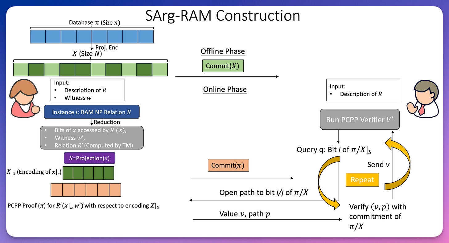 succinct arguments for the computation of a RAM program on a (big) committed database, where the communication and the run-time of both the prover and the verifier are close to optimal even when the RAM program run-time is much smaller than the database size.