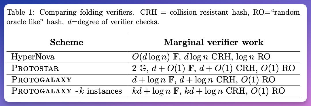 performs well when folding multiple instances at one step, in which case the marginal number of verifier field operations per instance becomes constant, assuming constant degree gates.