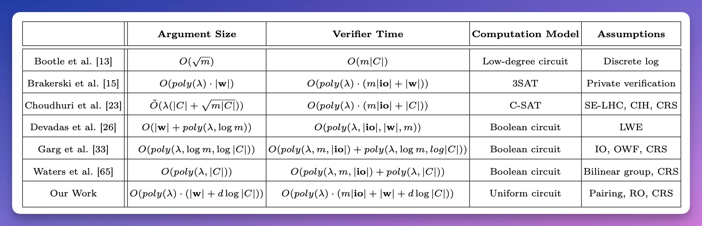 for the batch satisfiability problem, provide a construction of succinct interactive argument of knowledge for generic log-space uniform circuits based on the bilinear pairing and common reference string assumption.