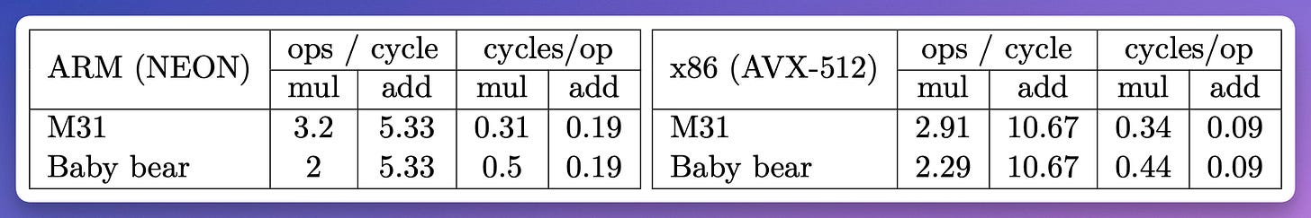 expect these "almost native" Reed-Solomon codes to perform as native ones based on prime fields with high two-adicity, but less processor-friendly arithmetic.