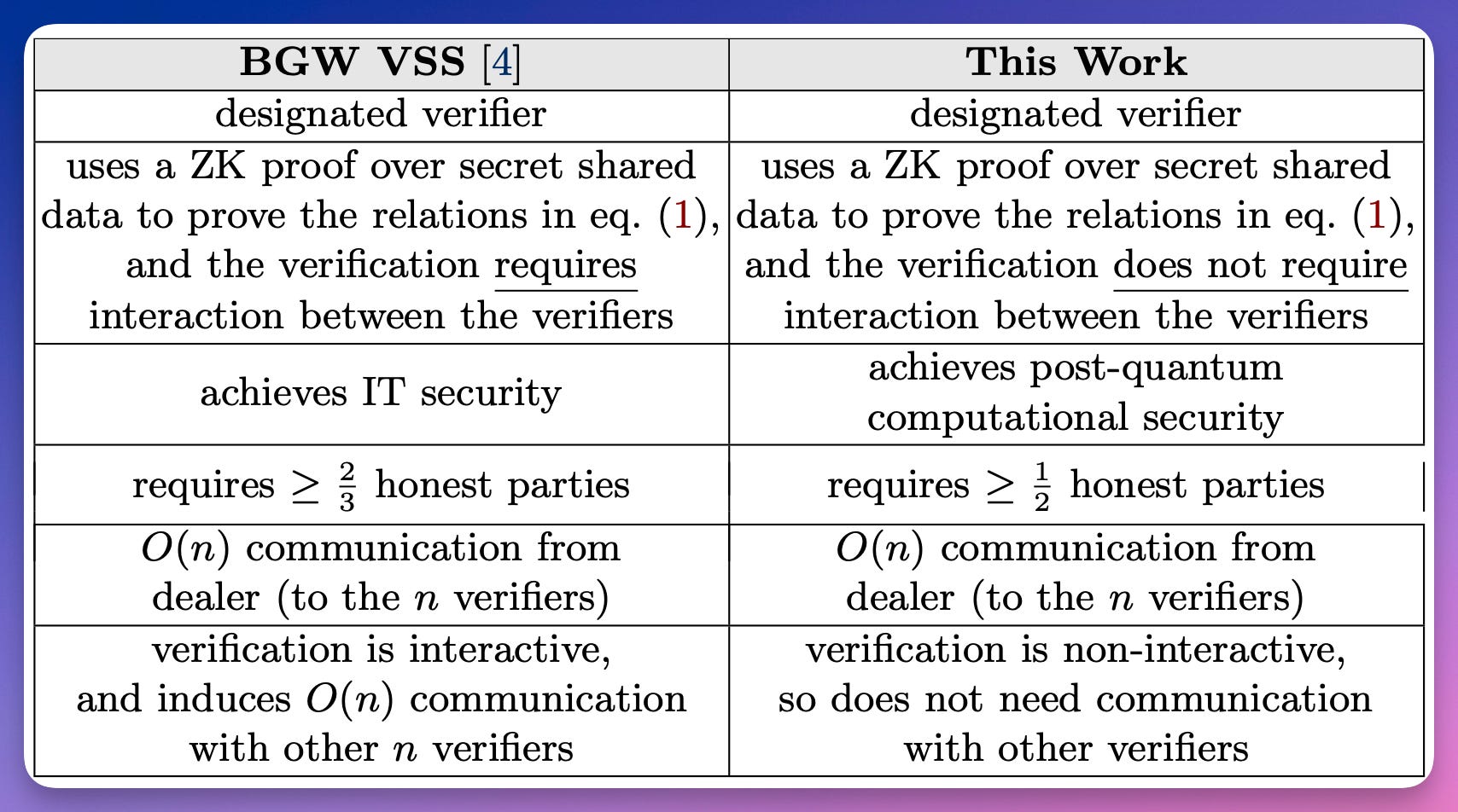 present an efficient NI-VSS scheme using ZK proofs on secret shared data.