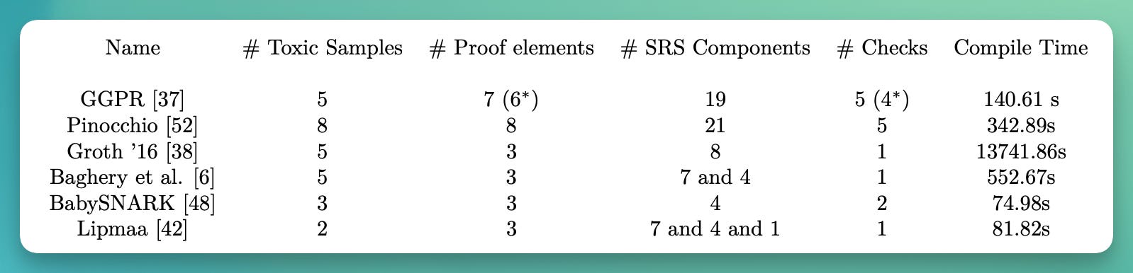 zero-knowledge for set membership allows a user to show knowledge of an element in a large set without leaking the specific element. Zcash Sapling strong trust assumption: an underlying setup that must be generated by a trusted third party.
