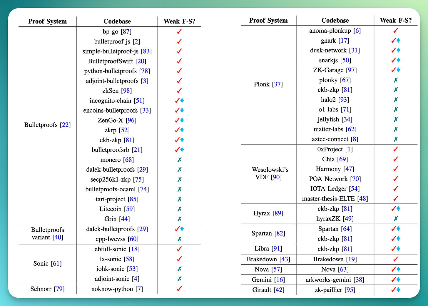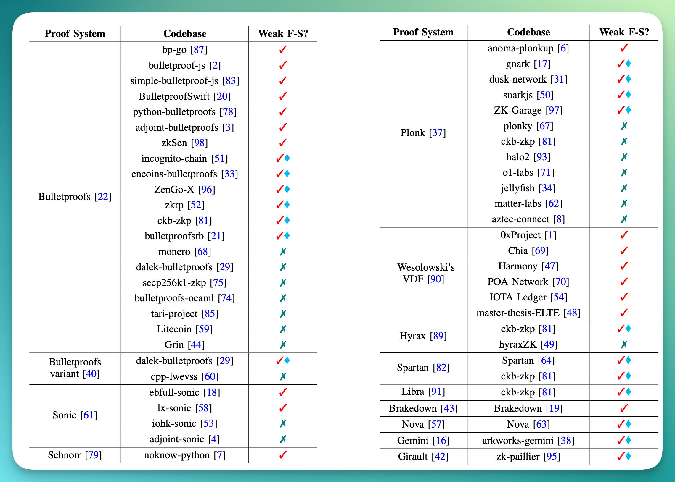 perform a survey of open-source implementations and find 36 weak F-S implementations affecting 12 different proof systems.